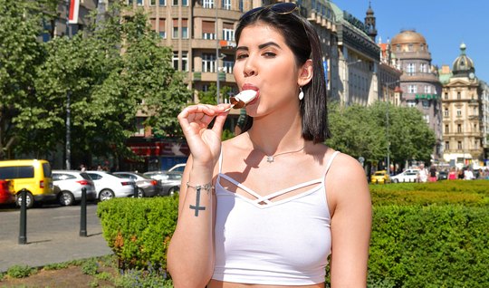 Молодая шлюшка мастурбирует свою пизду на природе...
